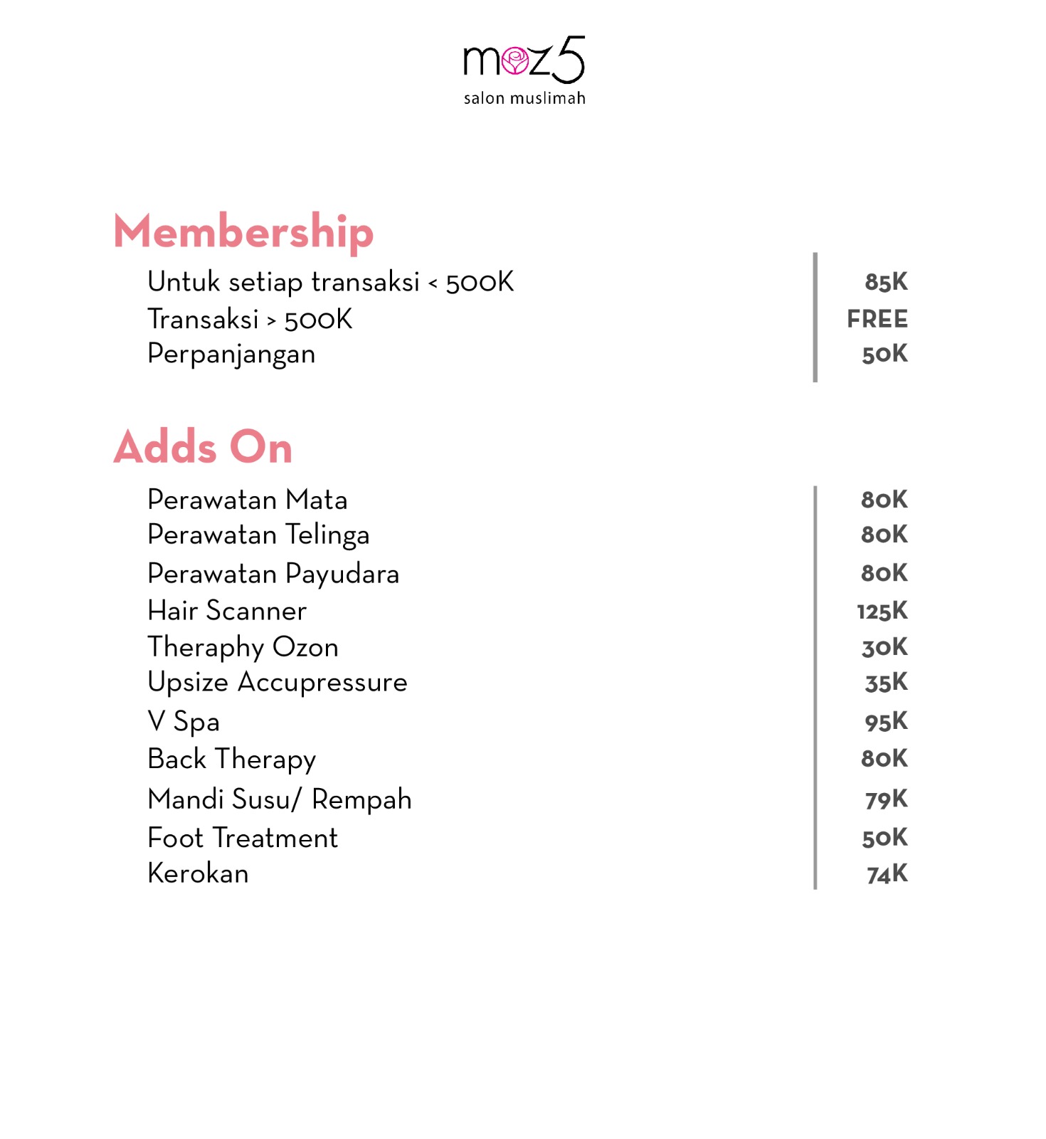 Let's be part of membership moz5 salon! nikmatin berbagai promo menarik yang hanya dapat dinikmati oleh membership.