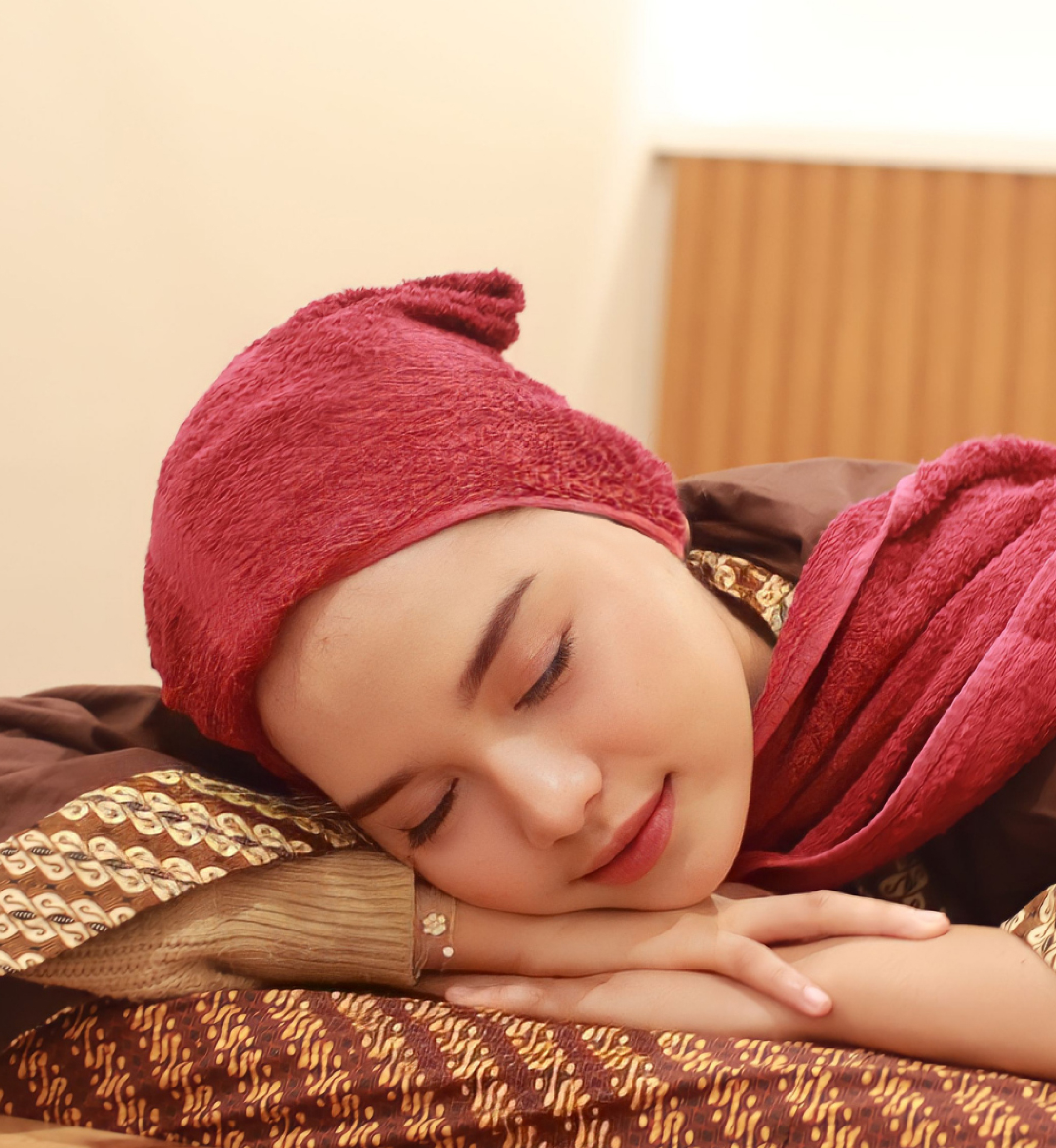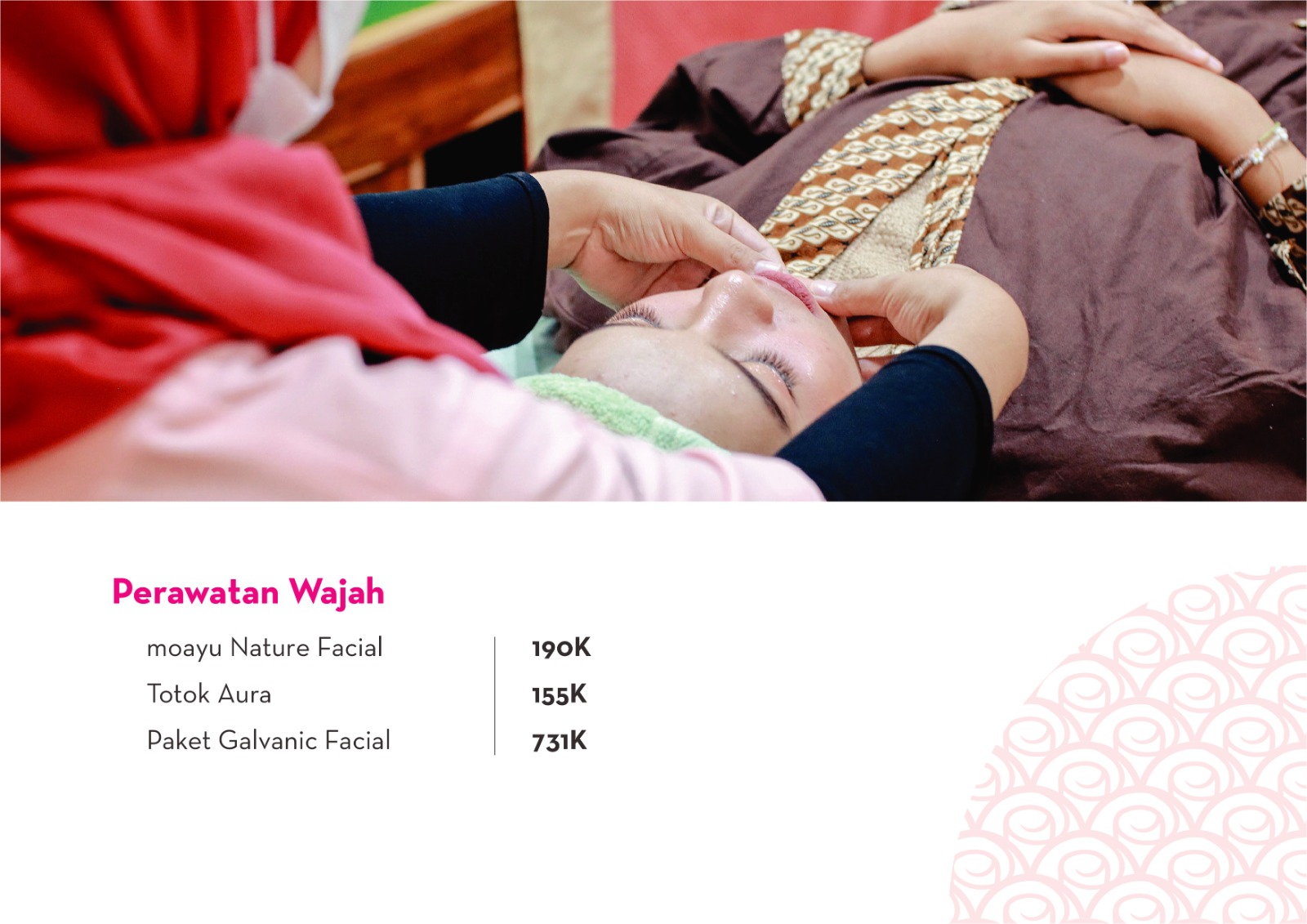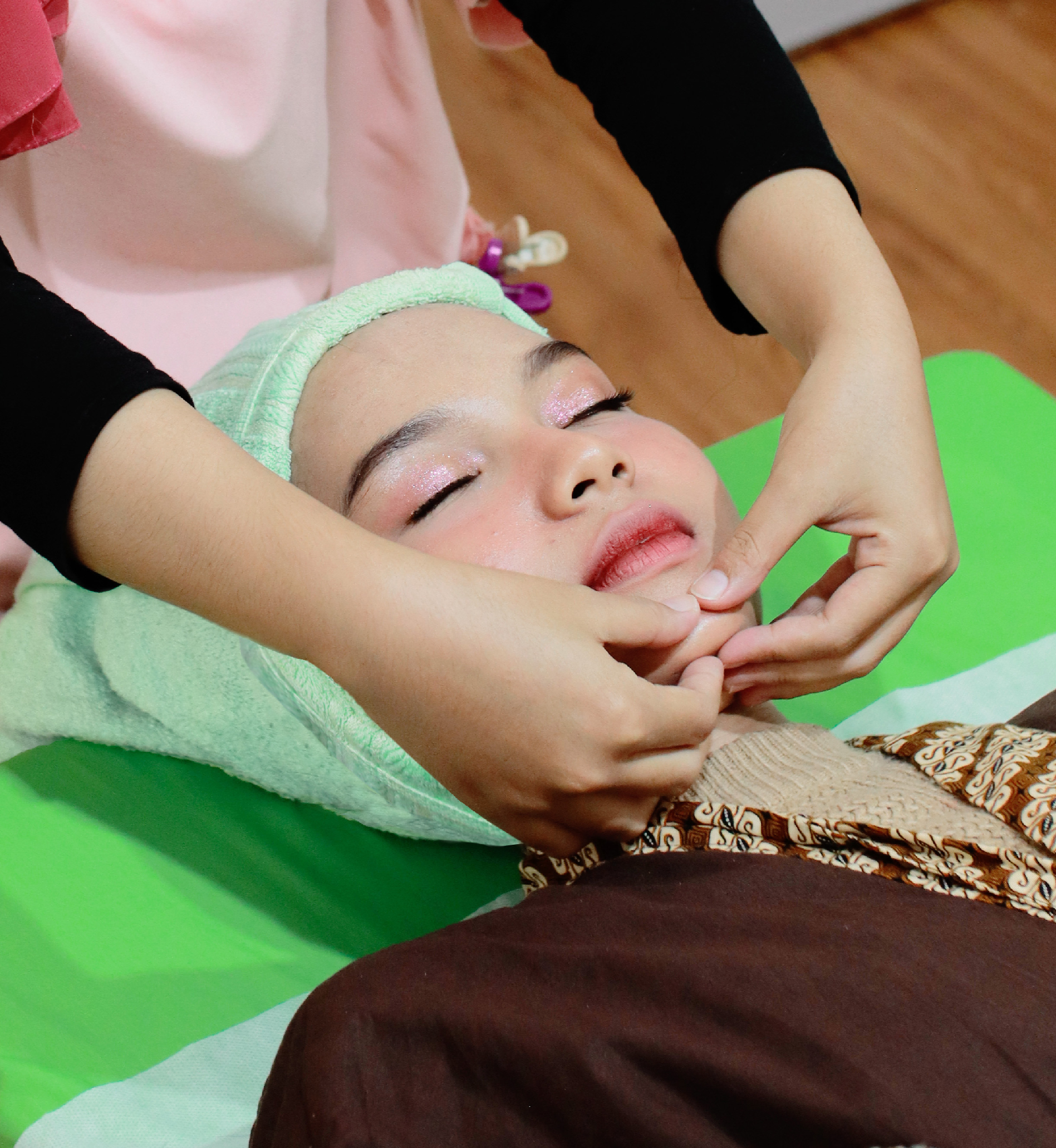 Melancarkan peredaran darah, menyegarkan dan memancarkan aura alami luar dan dalam, diakhiri masker wajah agar kulit wajah kencang.